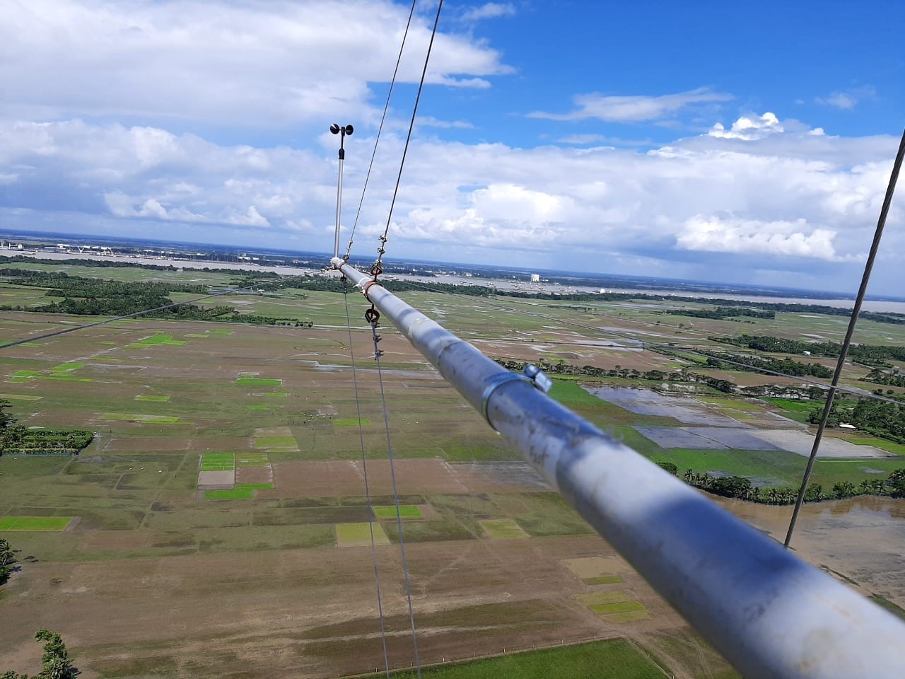 For any wind farm development project, sufficient data on the exact site needs to be collected for a period of at least one year. These data are analyzed to perform wind energy modeling. Thus, a 120-meter MET tower was set up by GREL, and instruments were fitted at different levels of the tower. The factors being measured are wind speed at 7 different levels, wind direction at two different levels, air temperature & humidity, and biometric pressure.